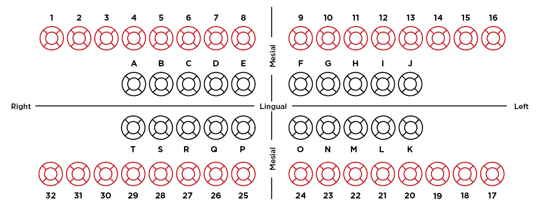 It Got Tooth surface chart Pedo Mixed and Adult tooth chart Dentsoftware provides dental charting. The color chart ensures a flawless finish. The veneer color chart helps to find the best color to fit the specific patient.